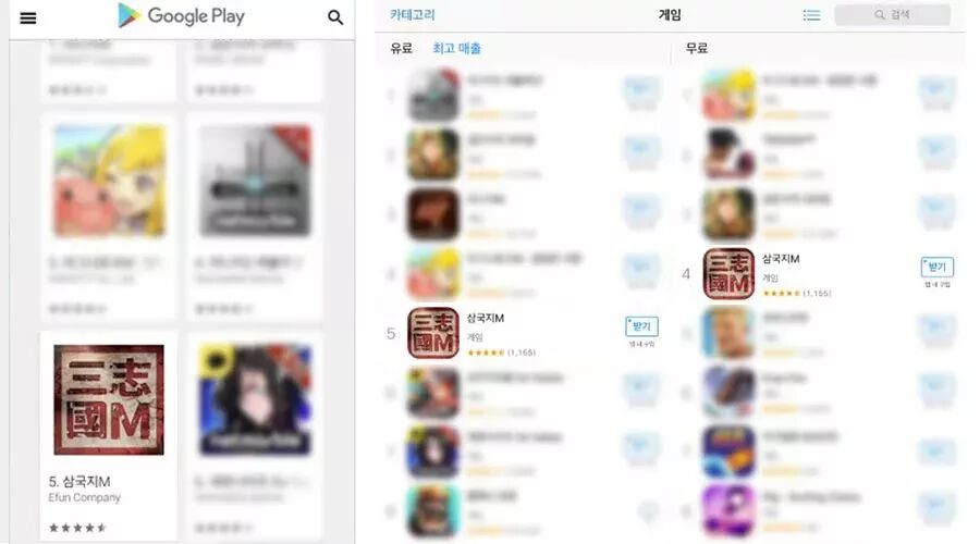 《三国志M》在韩国地区创造App Store、Google Play双市场畅销榜前5的成绩
